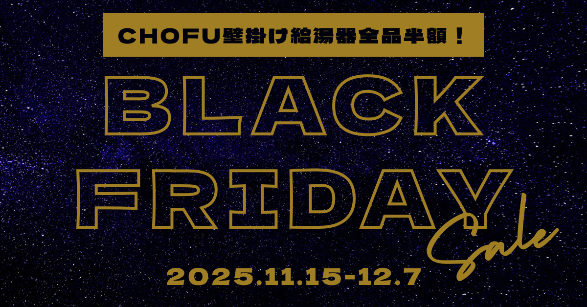 2025.11.17 お知らせ セール価格 ブラックフライデー特別セールのご案内 長府製壁掛け給湯器が全品半額!! 通常40%OFFの長府製壁掛け給湯器本体(ウルトラファインバブル搭載機器は50%OFFです)各種を期間限定で全品メーカー希望小売価格より半額にてご提供させていただきます。 標準機器もふろ自動機能付きも最新のウルトラファインバブル搭載機器も全部半額になります! このお得な機会にぜひご検討くださいませ。