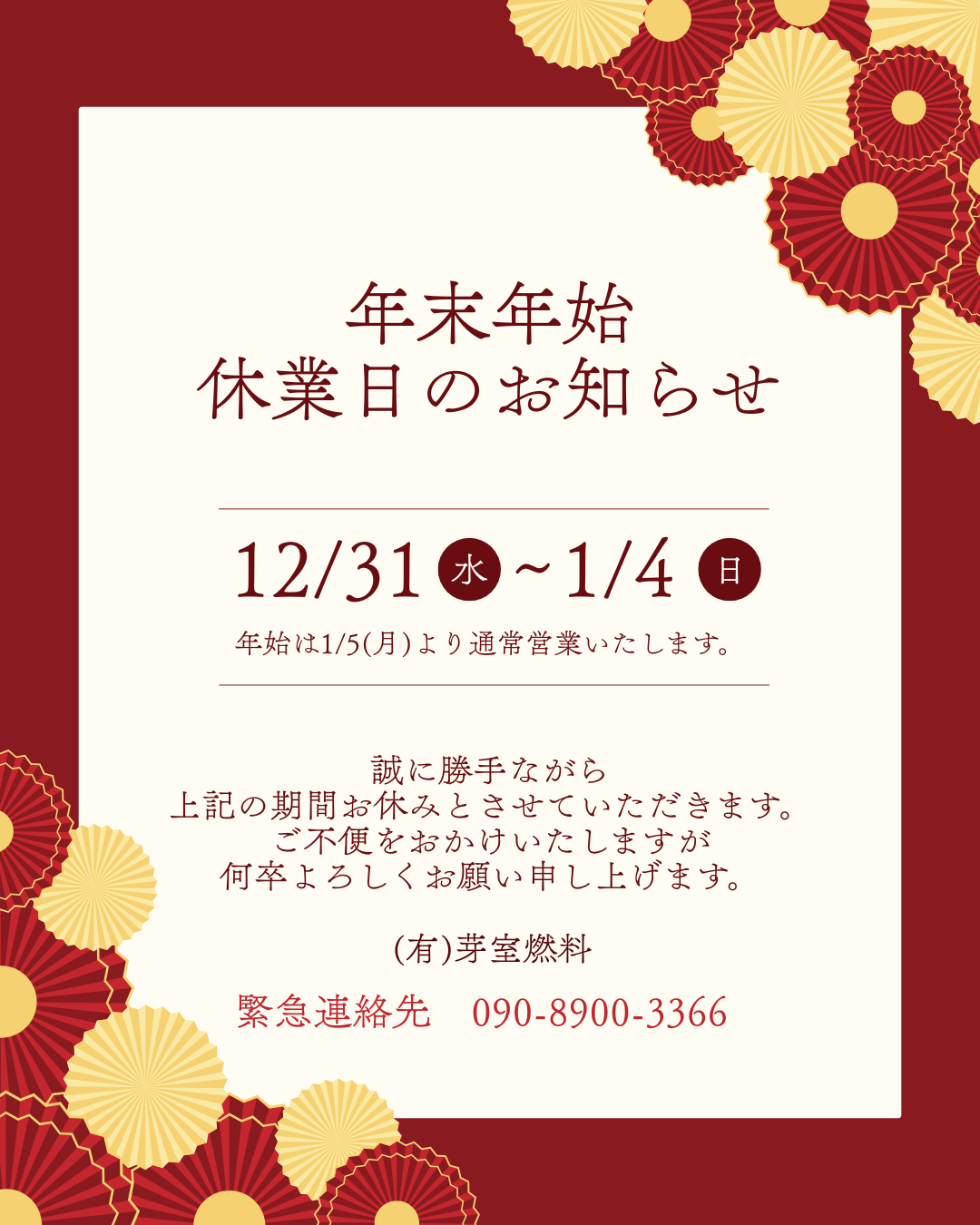 休業期間:2025年12月31日(水)~2026年1月4日(日)